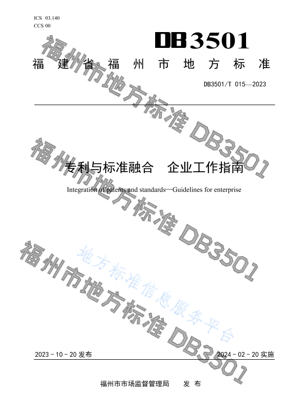 本文件按照GB/T 1.1 -2020《标准化工作导则第1部分:标准化文件的结构和起草规则》的规定起草。 请注意本文件的某些内容可能涉及专利。本文件的发布机构不承担识别专利的责任。 本文件由福州经济技术开发区市场监督管理局(福州经济技术开发区知识产权局)提出。 本文件由福州市市场监督管理局(福州市知识产权局)归口。 本文件起草单位:福州经济技术开发区市场监督管理局(福州经济技术开发区知识产权局)、福州市市场监督管理局(福州市知识产权局)、福建省标准化研究院、福建省标院信息技术有限公司、新大陆数字技术股份有限公司、福建星云电子股份有限公司、科立视材料科技有限公司、福州物联网开放实验室有限公司、福建新大陆自动识别技术有限公司、福建中锐网络股份有限公司、福建国光新业科技有限公司、腾景科技股份有限公司、福建中电合创电力科技有限公司、福建友通实业有限公司、福建福夏科技有限公司、福建网龙计算机信息技术有限公司。 本文件主要起草人:林毅。颜耀鹏、何朝晖、李海晏、史冬冬、曾友竞、蔡春水、刘伟、谢祯瀛、周陈芬、郭栋、马森标、蔡勇,余最顺、林潮龙、陈丽云、魏璟毅、林敏美、刘懿楠、俞雪梅、邱春玲、黄绍梁、洪心润、廖应辉、王彬彬、卢俊、陈小锋。