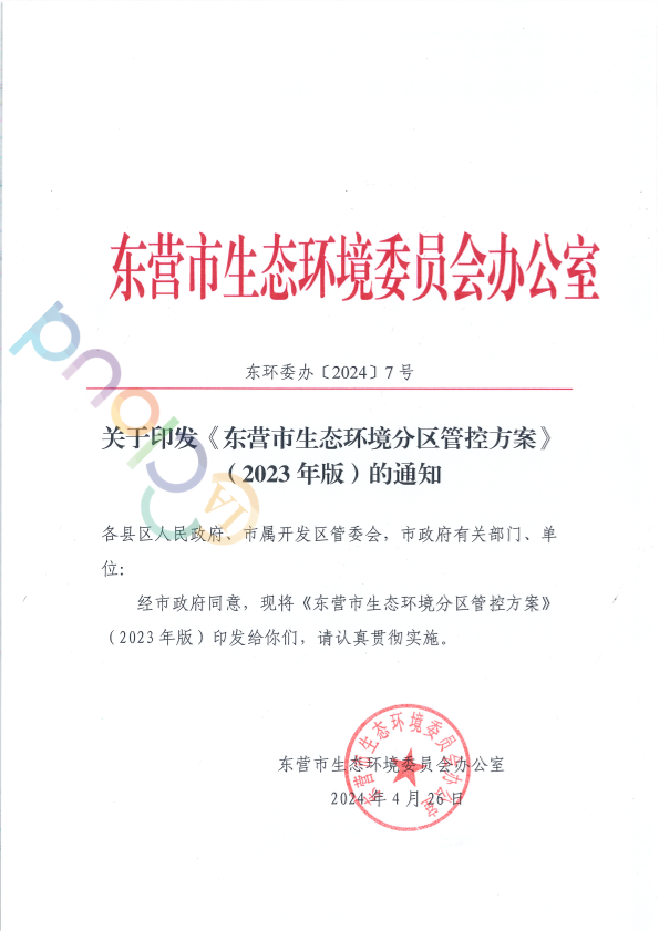 关于印发《东营市生态环境分区管控方案》(2023年版)的通知.pdf