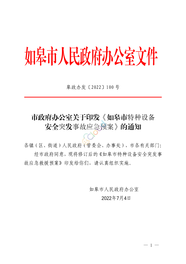 市政府办公室关于印发《如皋市特种设备安全突发事故应急预案》的通知.pdf