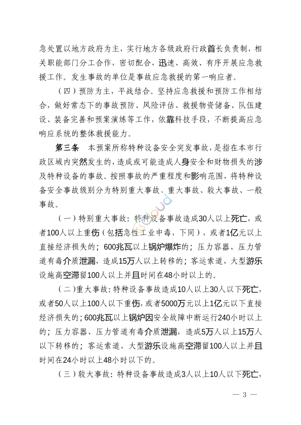 • 依据《特种设备安全法》《安全生产法》等法律法规制定,旨在有效预防和应对特种设备安全事故,减少人员伤亡和经济损失。