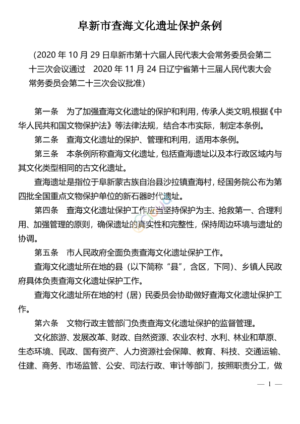 2020年10月29日阜新市第十六届人民代表大会常务委员会第二十三次会议通过 2020年11月24日辽宁省第十三届人民代表大会常务委员会第二十三次会议批准