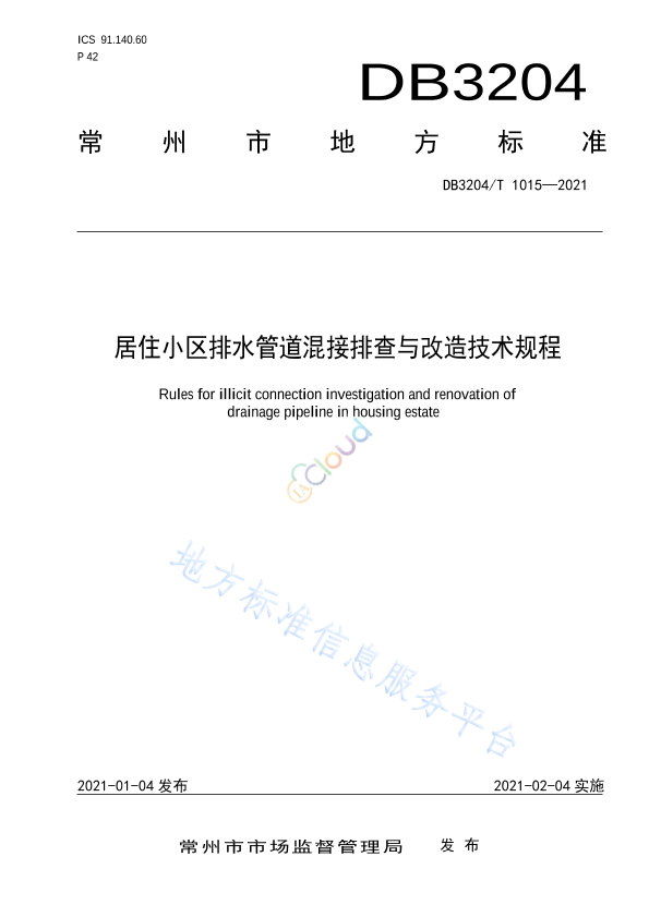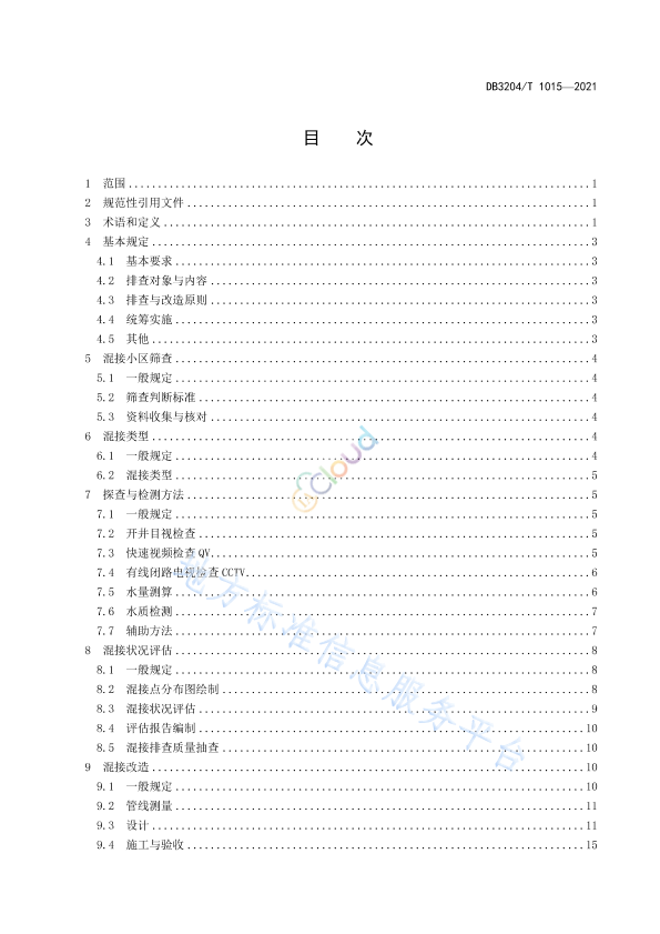本标准规定了居住小区排水管道混接排查与改造的术语和定义、基本规定、混接小区筛查、混接类型、探查与检测方法、混接状况评估、混接改造等工作的原则、要求和内容。