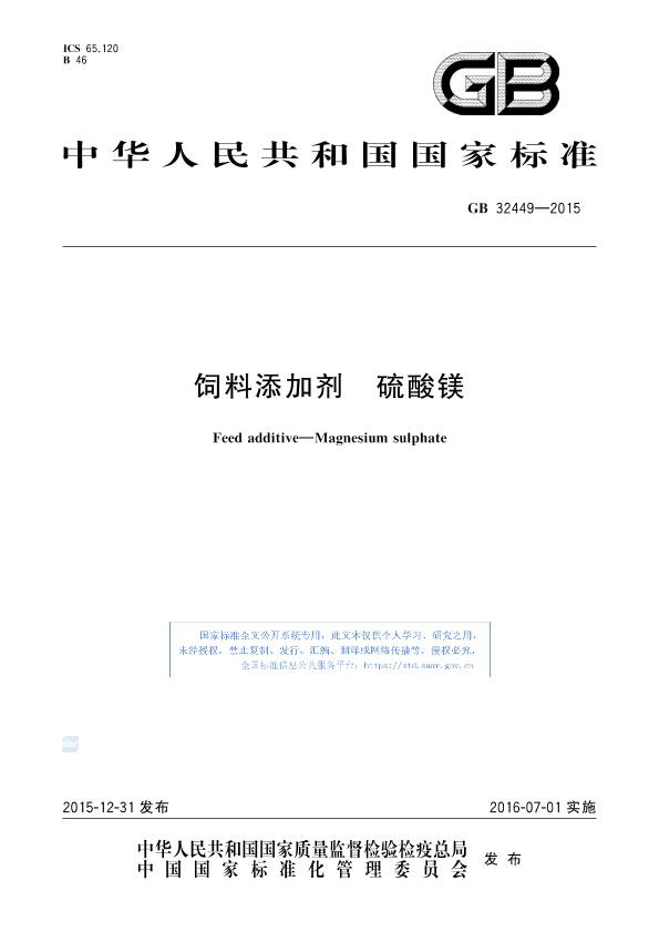GB 3249•2015 饲料添加剂硫酸镁国家标准概览