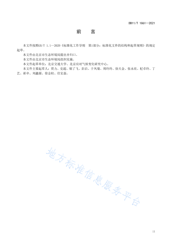 本文件按照GB/T1.1—2020《标准化工作导则第1部分:标准化文件的结构和起草规则》的规定起草。 本文件由北京市生态环境局提出并归口。 本文件由北京市生态环境局组织实施。 本文件起草单位:北京交通大学、北京应对气候变化研究中心。 本文件主要起草人:贾力、党超、银了飞、彭启、于凤菊、周玲玲、徐天金、张永欣、杞卓玲、丁艺、崔卓、刘鑫源、徐金柱、任宏磊。