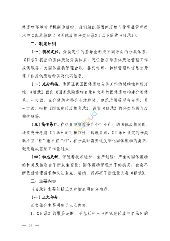 为贯彻落实《中华人民共和国固体废物污染环境防治法》,更好支撑固体废物的规范化、精细化、信息化管理,我部组织编制了《固体废物分类目录(征求意见稿)》。现公开征求意见,征求意见稿及其编制说明可登录我部网站(http://www.mee.gov.cn)“意见征集”栏目检索查阅。 各机关团体、企事业单位和个人均可提出意见和建议,有关意见建议请书面反馈我部,电子文档请同时发送至联系人邮箱。征求意见截止时间为2022年7月20日。 联系人:生态环境部固体废物与化学品司李燚佩 通信地址:北京市东城区东长安街12号 邮政编码:100006 电话:(010)65645746 传真:(010)65645745 邮箱:swmd@mee.gov.cn 附件:1.固体废物分类目录(征求意见稿) 2.《固体废物分类目录(征求意见稿)》编制说明 生态环境部办公厅 2022年6月23日