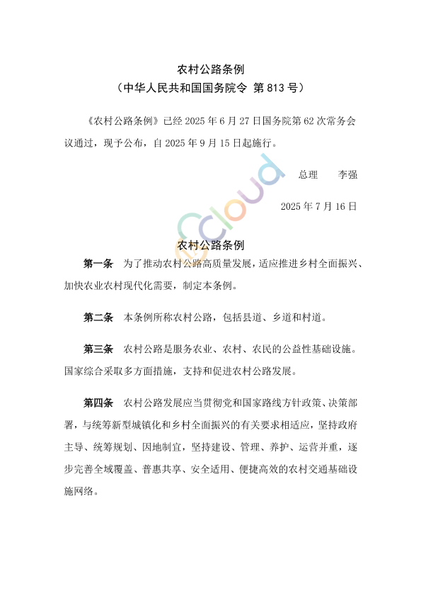 《农村公路条例》概览(2025年9月15日施行)