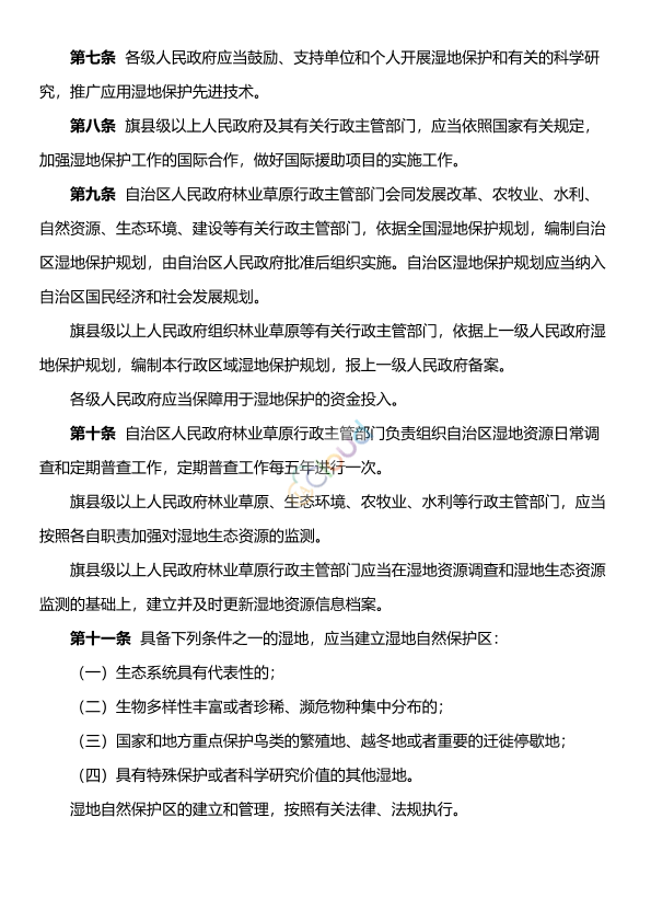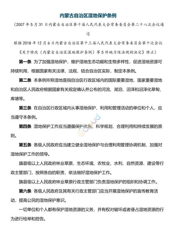 2007年5月31日内蒙古自治区第十届人民代表大会常务委员会第二十八次会议通过 根据2018年12月6日内蒙古自治区第十三届人民代表大会常务委员会第十次会议《关于修改〈内蒙古自治区湿地保护条例〉等5件地方性法规的决定》修正