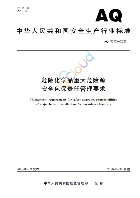 本文件规定了危险化学品重大危险源(以下简称“重大危险源”)安全包保责任的一般规定、安全包保责任人包保要求、安全包保责任人隐患排查任务。本文件适用于危险化学品生产经营(有储存)企业·化工(含医药)企业(以下简称“企业”)重大危险源的安全管理,本文件不适用于下列情况构成的重大危险源:a)城镇燃气;b)地下水封洞库、地下储气库;c)危险化学品厂外运输(包括铁路、道路、水路、航空、管道等运输方式)的中转仓储、站场;d)港区内从事危险化学品的仓储经营;e)用于国防科研生产的危险化学品。