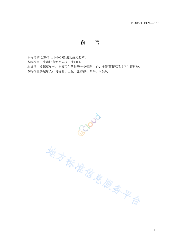 本标准按照GB/T 1.1-2009给出的规则起草。 本标准由宁波市城市管理局提出并归口。 本标准主要起草单位:宁波市生活垃圾分类管理中心、宁波市市容环境卫生管理处。 本标准主要起草人:何锡明、王侃、张静静、张科、朱旻航。