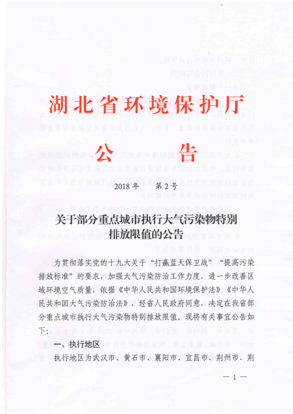 为贯彻落实党的十九大关于“打赢蓝天保卫战 ”“提高污染排放标准 ”的要求 ,加强大气污染防治工作力度 ,进 一步改善区域环境空气质量 ,依 据 《 中华人民共和国环境保护法》《 中华人民共和国大气污染防治法》 ,经省人民政府同意 ,决定在我省部分重点城市执行大气污染物特别排放限值。