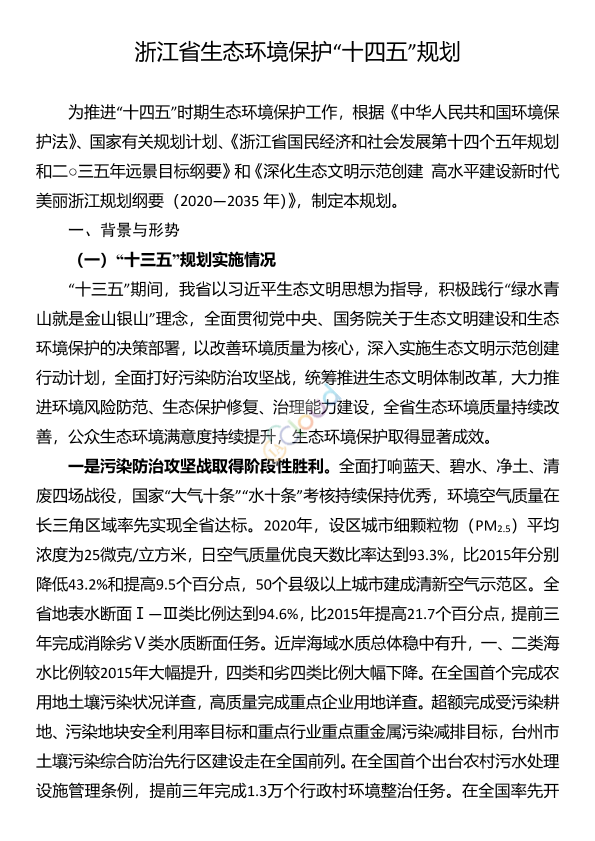 各市、县(市、区)人民政府,省级有关单位: 《浙江省生态环境保护“十四五”规划》已经省人民政府同意,现印发给你们。请结合实际,认真组织实施。 浙江省发展和改革委员会 浙江省生态环境厅 2021年5月31日