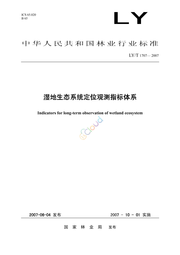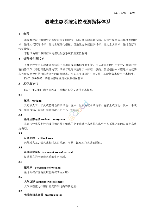 本标准规定了湿地生态系统定位观测指标,即湿地资源综合指标、湿地气象常规与梯度观测指标、湿地大气沉降指标、湿地土壤理化指标、湿地生态系统健康指标、湿地水文指标、湿地群落学特征指标。 本标准适用于我国范围内湿地生态系统长期定位观测。