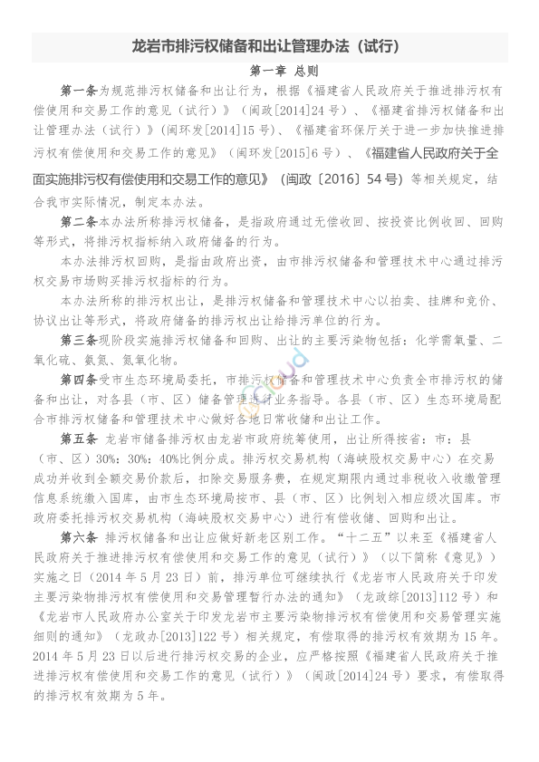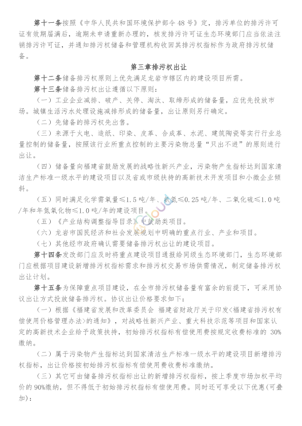 为规范排污权储备和出让行为,根据《福建省人民政府关于推进排污权有偿使用和交易工作的意见(试行)》(闽政[2014]24号)、《福建省排污权储备和出让管理办法(试行)》(闽环发[2014]15号)、《福建省环保厅关于进一步加快推进排污权有偿使用和交易工作的意见》(闽环发[2015]6号)、《福建省人民政府关于全面实施排污权有偿使用和交易工作的意见》(闽政〔2016〕54号)等相关规定,结合我市实际情况,制定本办法。