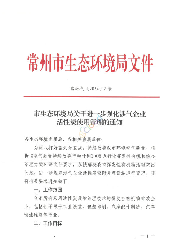 各生态环境直属局,各相关直属单位: 为深入打好蓝天保卫战,持续改善我市环境空气质量,根据《空气质量持续改善行动计划》《重点行业挥发性有机物综合治理方案》等文件要求,加快解决我市挥发性有机物治理突出问题,进一步规范涉气企业活性炭吸附处理设施运行管理,现将有关要求通知如下: