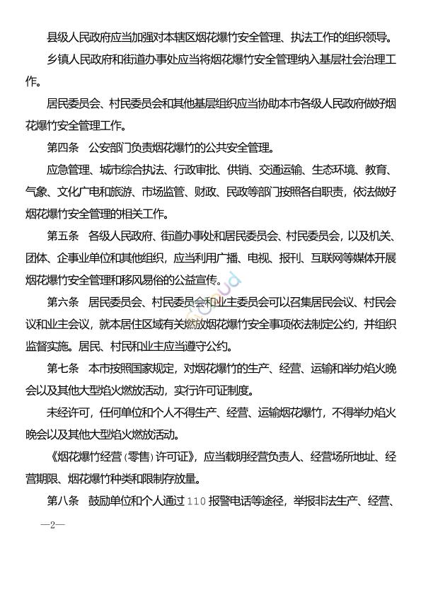 为了加强烟花爆竹安全管理,保障公共安全和人身、财产安全,改善大气环境质量,根据国家有关法律、法规,结合本市实际,制定本条例。