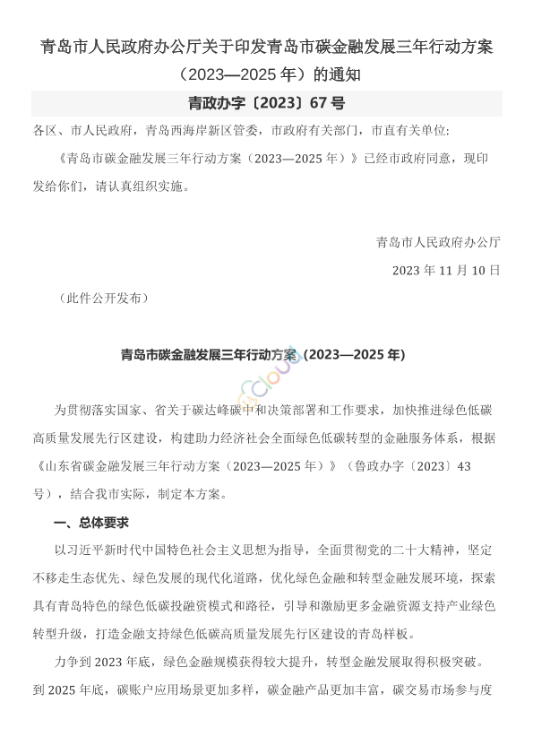 青岛市人民政府办公厅关于印发青岛市碳金融发展三年行动方案(2023-2025年)的通知.pdf