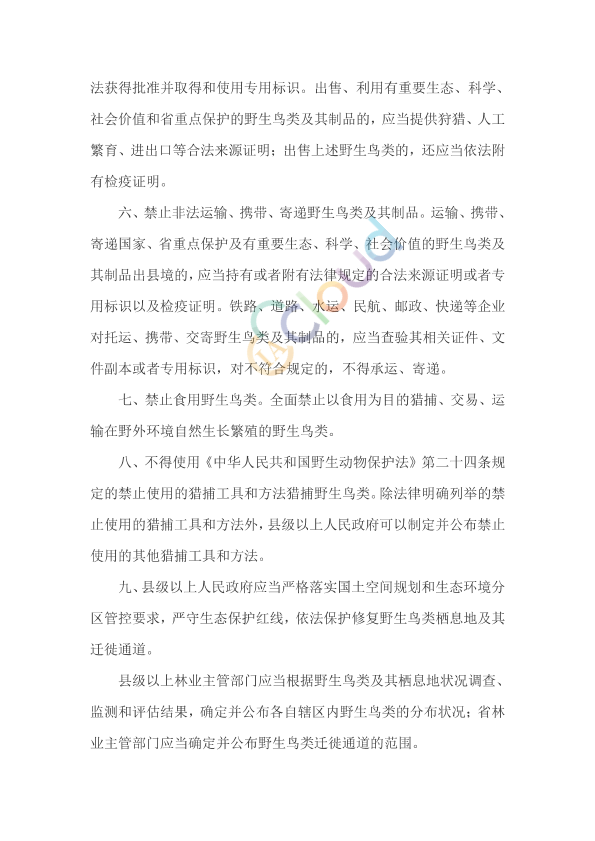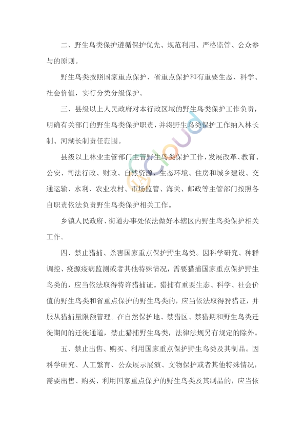 1. 保护原则:实行分类分级保护(国家重点/省重点/三有鸟类),明确国家所有权和全民保护义务