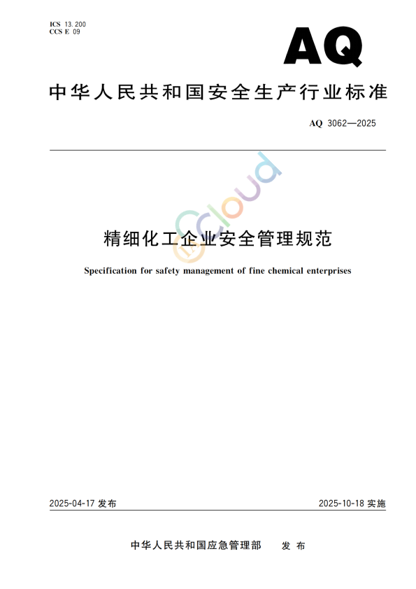 本文件规定了精细化工企业的总体要求、工艺技术、规划布局与总图布置、设计、试生产管理、运行管理、检维修管理和应急管理等方面的安全要求。 本文件适用于精细化工企业新建,扩建和改建项目安全管理以及精细化工企业的运行管理。