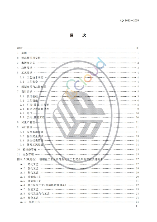 本文件的全部技术性内容为强制性。 本文件按照GB/T1.1一2020《标准化工作导则第1部分:标准化文件的结构和起草规则》的规定起草。 请注意本文件的某些内容可能涉及专利。本文件的发布机构不承担识别专利的责任。 本文件由中华人民共和国应急管理部提出,危险化学品安全监督管理一司业务管理,政策法规司统筹管理。 本文件由全国安全生产标准化技术委员会化学品安全分技术委员会(SAC/TC288/SC3)技术归口及咨询。 本文件起草单位:浙江省应急管理科学研究院、浙江省天正设计工程有限公司、沈阳化工研究院有限公司、中国化学品安全协会、浙江工程设计有限公司、浙江龙盛集团股份有限公司、浙江新和成股份有限公司、浙江衢化氟化学有限公司、中控技术股份有限公司、浙江大学衢州研究院、万华化学(宁波)有限公司、浙江巍华新材料股份有限公司、长三角绿色制药协同创新中心(浙江工业大学)。 本文件主要起草人:冯桂、吴晓军、吴恢庆,包晓跃、梁汝军、刘啸武、程春生、童熹琛、郑根土、何旭斌、洪江永、王晓钟、王文学、俞文光、潘强彪、苏为科、吕帏、孙青霞、沈奕峰、黄林兵、潘浩、魏振云、江奎、白存寿、朱鹏飞、刘斌、徐华军、吕家育、黄飞、毛钦晖、张增兴、舒理建、范咏峰、万勇。 本文件为首次发布。