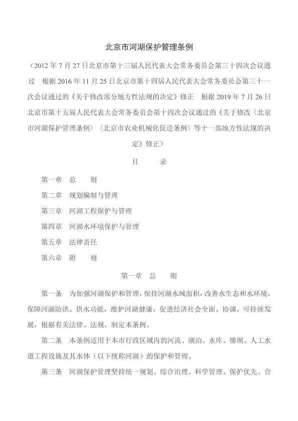 (2012年7月27日北京市第十三届人民代表大会常务委员会第三十四次会议通过 根据2016年11月25日北京市第十四届人民代表大会常务委员会第三十一次会议通过的《关于修改部分地方性法规的决定》修正 根据2019年7月26日北京市第十五届人民代表大会常务委员会第十四次会议通过的《关于修改〈北京市河湖保护管理条例〉〈北京市农业机械化促进条例〉等十一部地方性法规的决定》修正)
