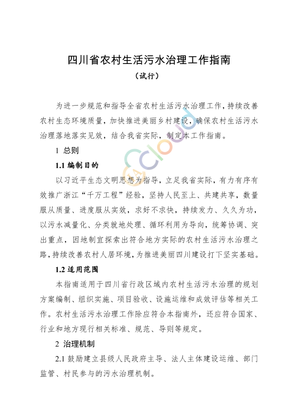 各市(州)生态环境局: 现将《四川省农村生活污水治理工作指南(试行)》印发给你们,请结合实际抓好工作落实。 附件:四川省农村生活污水治理工作指南(试行) 四川省生态环境厅办公室 2024年6月20日