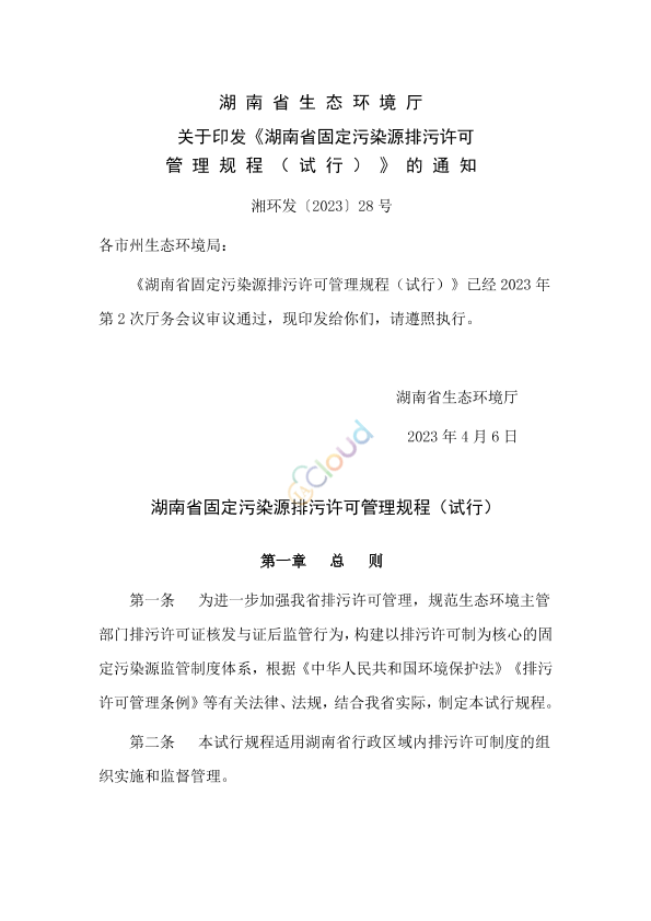 各市州生态环境局: 《湖南省固定污染源排污许可管理规程(试行)》已经2023年第2次厅务会议审议通过,现印发给你们,请遵照执行。 湖南省生态环境厅 2023年4月6日