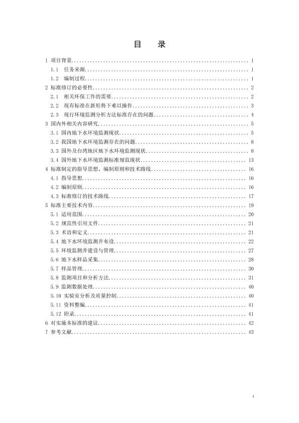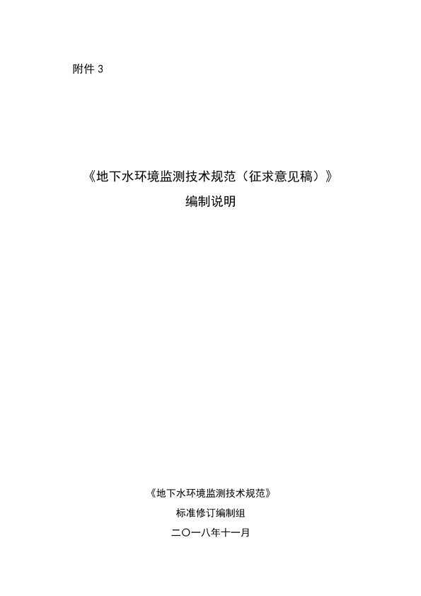 为贯彻《中华人民共和国环境保护法》《中华人民共和国水污染防治法》,保护地下水水质,防止地下水污染,保障人体健康,制定本标准。 本标准规定了地下水环境监测点布设、环境监测井建设与管理、样品采集和管理、监测和分析方法选择、监测数据处理、质量保证和质量控制和资料整编等方面的要求。 本标准首次发布于 2004 年,原标准起草单位为中国环境监测总站。本次为第一次修订,修订后的标准共 11 章 6 个附录。主要修订内容如下: ——增加了环境监测井的术语和定义; ——增加了饮用水源及其补给区和污染源周边地下水监测点的布设; ——增加了环境监测井的标识; ——取消了信息系统建设; ——取消了附录 C(规范性附录)地下水监测实验室质量控制指标等相关内容; ——补充完善了环境监测井的建设与管理、样品采集、监测项目、分析方法、监测数据处理、质量保证和质量控制等相关内容。 本标准自实施之日起,原标准《地下水环境监测技术规范》(HJ/T 164-2004)废止。 本标准由生态环境部生态环境监测司、法规与标准司组织制订。 本标准主要起草单位:中国环境监测总站、环境保护部环境规划院、环境保护部宣教中心、轻工业环境保护研究所、宁夏回族自治区环境监测中心站、江苏省环境监测中心、河南省环境监测中心。 本标准生态环境部 20□□年□□月□□日批准。 本标准自 20□□年□□月□□日起实施。 本标准由生态环境部解释。