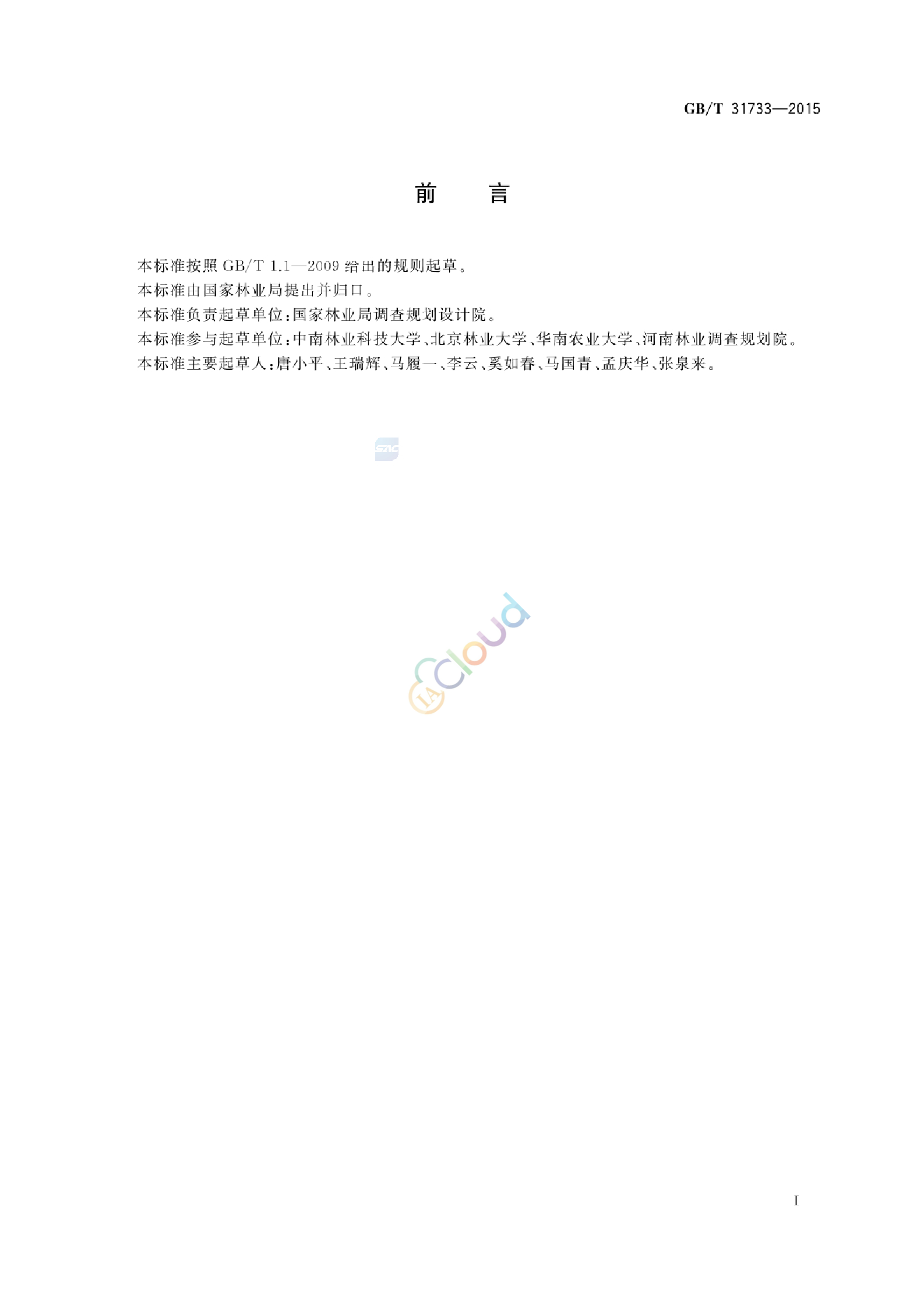 本标准按照GB/T1.1—2009给出的规则起草。 本标准由国家林业局提出并归口。 本标准负责起草单位:国家林业局调查规划设计院。 本标准参与起草单位:中南林业科技大学,北京林业大学、华南农业大学,河南林业调查规划院。