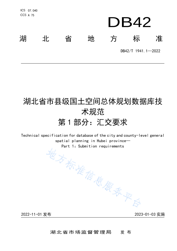 本文件规定了湖北省市(州)、县(市、区)级国土空间总体规划敞据库电子数据汇交总体要求、数据内容、格式、命名要求、成果数据组织形式。 本文件适用于湖北省市(州)、县(市、区)级国土空间总体规划数据库电子成果数据的汇交要求。