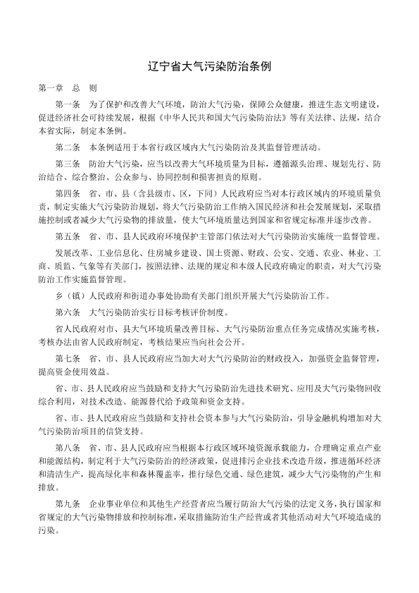 《辽宁省大气污染防治条例》已由辽宁省第十二届人民代表大会常务委员会第三十四次会议于2017年5月25日审议通过,现予公布。本条例自2017年8月1日起施行。 2017年05月25日