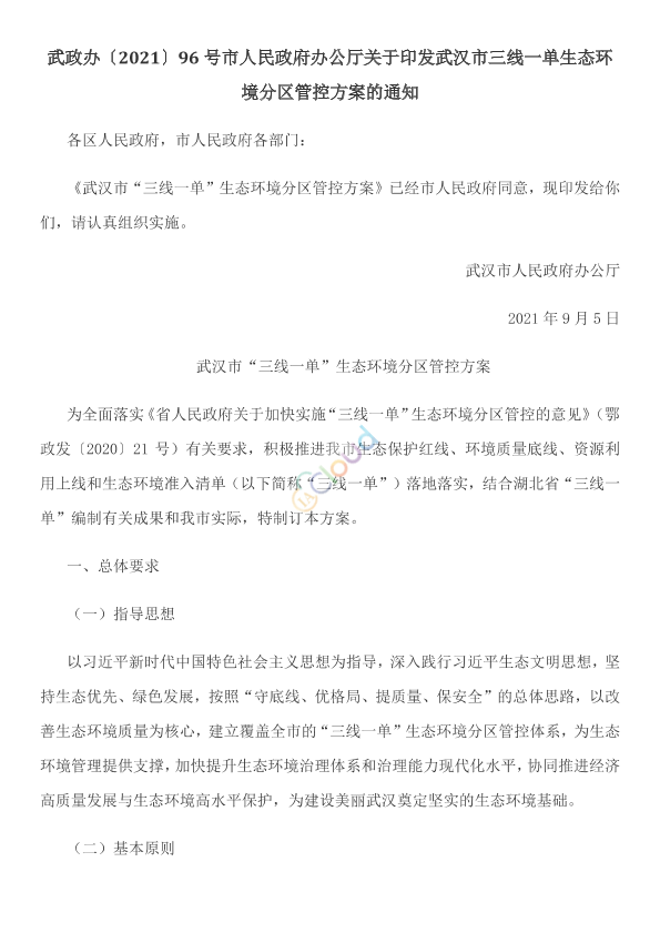 武政办〔2021〕96号市人民政府办公厅关于印发武汉市三线一单生态环境分区管控方案的通知.pdf