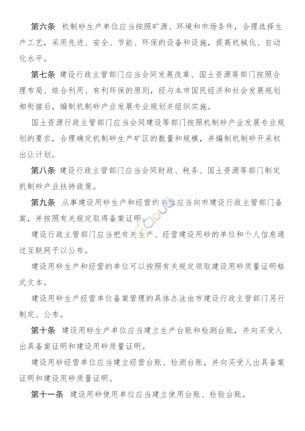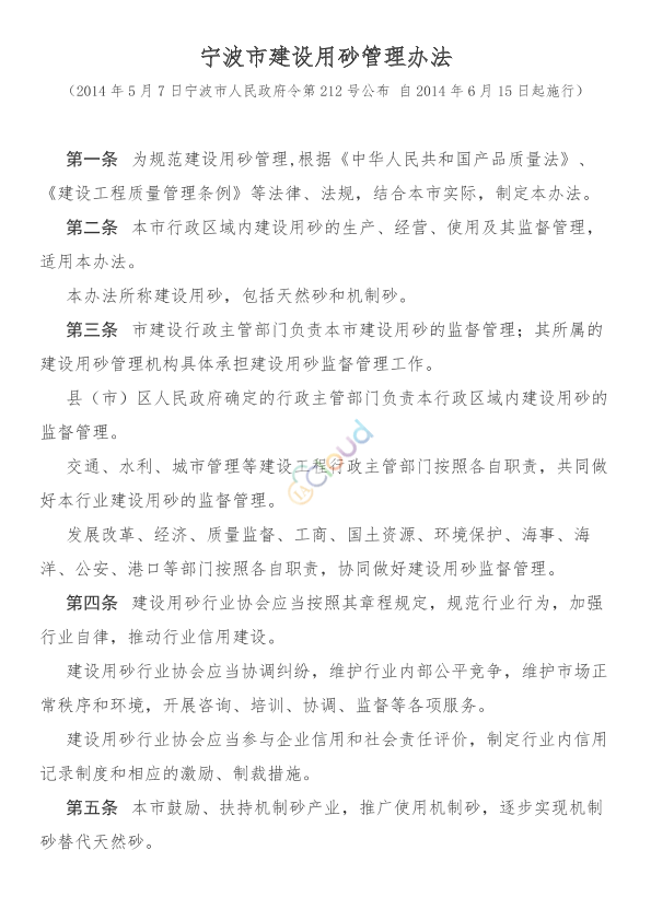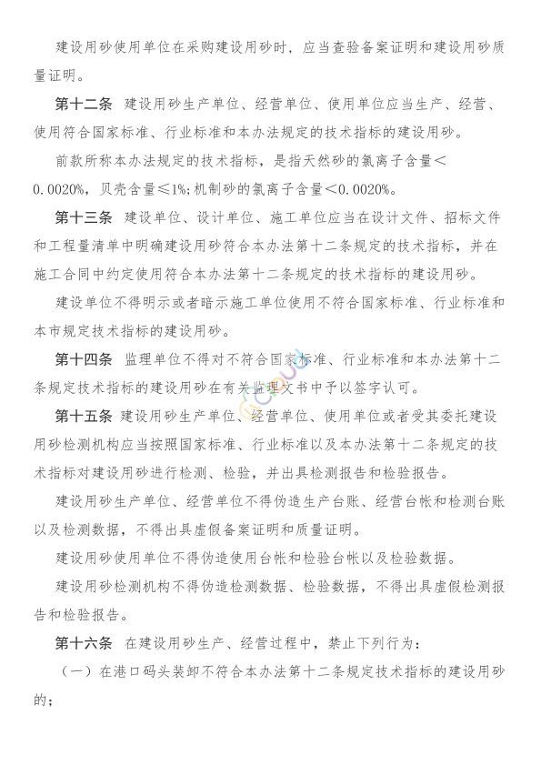 为规范建设用砂管理,根据《中华人民共和国产品质量法》、《建设工程质量管理条例》等法律、法规,结合本市实际,制定本办法。