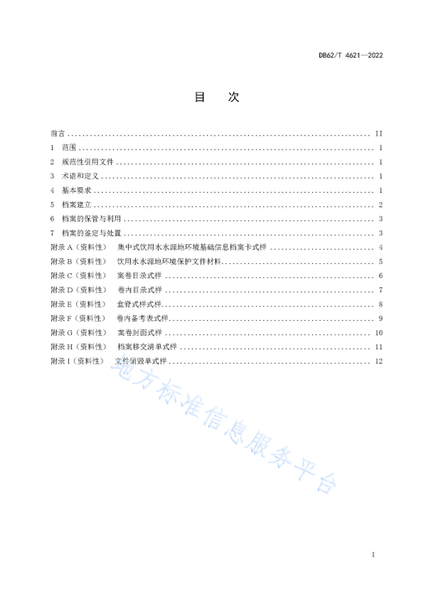 本文件规定了甘肃省集中式饮用水水源地环境保护工作中产生的具有保存价值的不同形式和载体的文件材料的档案建立、保管与利用、鉴定与处置。 本文件适用于甘肃省集中式饮用水水源地环境保护档案管理工作。