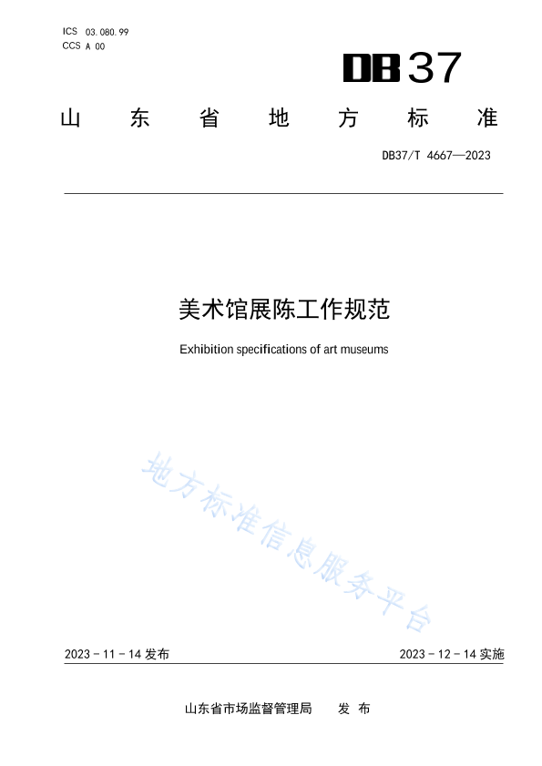本文件规定了美术馆展陈的设施设备、人员要求、工作要求及评价与改进。 本文件适用于美术馆举办的开放性展览陈列。画廊、艺术展览馆等参考使用。