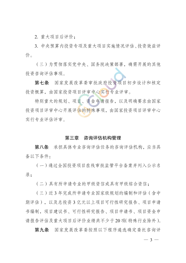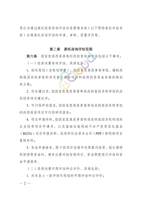 中央和国家机关有关部门、中央军委有关部门,各省、自治区、直辖市及计划单列市、新疆生产建设兵团发展改革委,有关中央企业: 为进一步完善我委投资决策程序,提高投资决策科学化、民主化水平,规范投资决策过程中的委托咨询评估工作,我委对《国家发展改革委投资咨询评估管理办法》(发改投资规〔2022〕632号)进行了修订。现将修订后的《国家发展改革委委托投资咨询评估管理办法》印发给你们,请按照执行。 国家发展改革委 2025年10月30日
