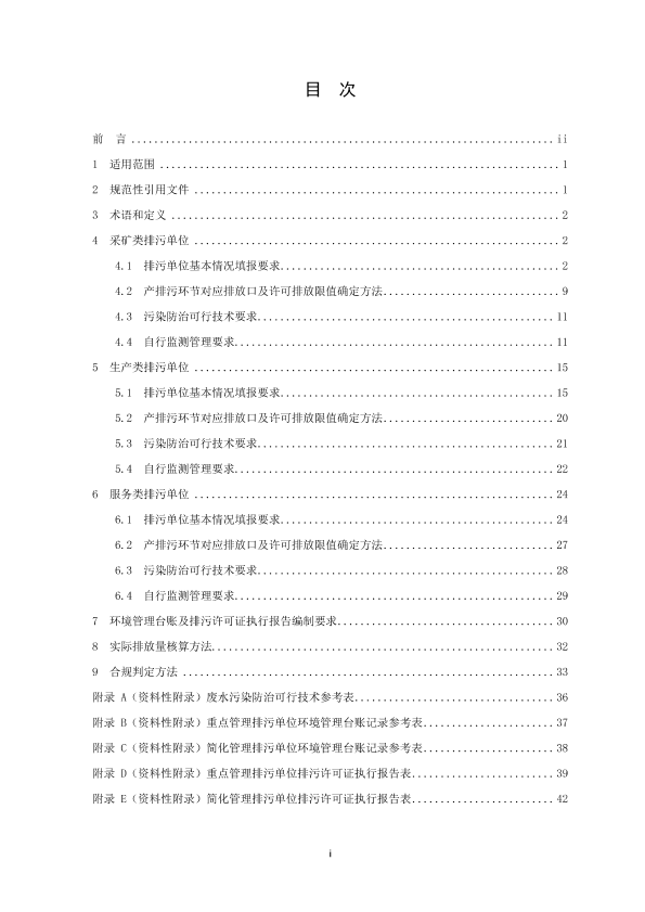 本标准规定了采矿类、生产类、服务类排污单位水处理设施排放污染物的排污许可证申 请与核发的基本情况填报要求、许可排放限值确定、实际排放量核算、合规判定的一般方法 以及自行监测、环境管理台账与排污许可证执行报告等环境管理要求,提出了污染防治可行 技术要求。 本标准适用于指导采矿类、生产类、服务类排污单位在全国排污许可证管理信息平台填 报水处理设施排放污染物的相关申请信息,适用于指导核发机关审核确定排污单位排污许可 证许可要求。 本标准适用于采矿类、生产类、服务类排污单位水处理设施排放污染物的排污许可管理。 排污单位中有行业排污许可证申请与核发技术规范的,执行行业技术规范。