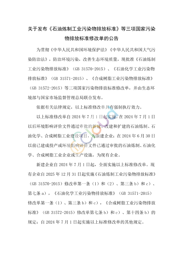 关于发布《石油炼制工业污染物排放标准》等三项国家污染物排放标准修改单的公告.pdf