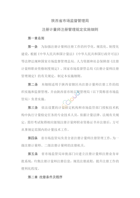 陕西省市场监督管理局注册计量师注册管理规定实施细则