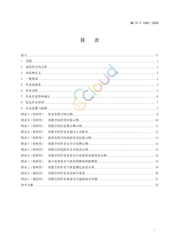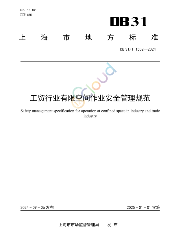 本文件规定了工贸行业生产经营单位进行有限空间作业的一般要求,作业前准备,作业过程,作业后清理和确认,发包作业管理,应急处置与救援等要求。 本文件适用于上海市行政区域内工贸行业生产经营单位实施有限空间作业安全管理。