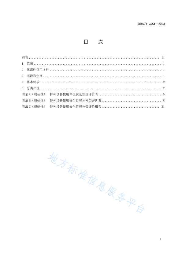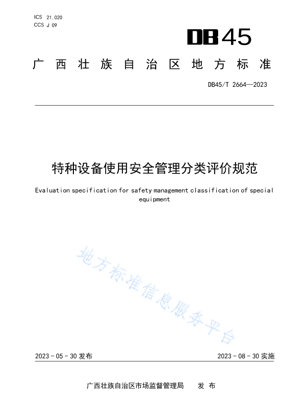 本文件界定了特种设备使用安全管理分类评价的术语和定义,规定了基本要求、分类评价的内容。 本文件适用于广西壮族自治区行政区域内特种设备的使用安全管理分类评价,也适用于监管机构对特种设备使用单位的安全检查。