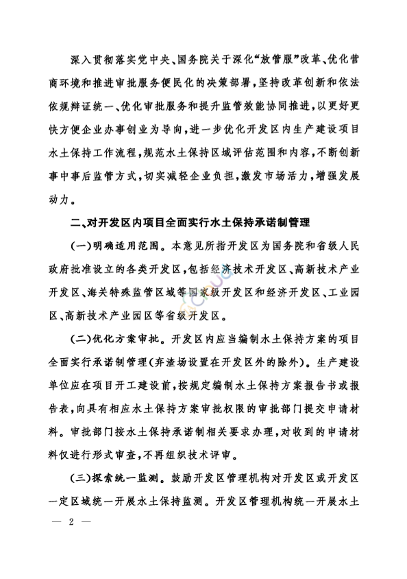 各流域管理机构,各省、自治区、直辖市水利(水务)厅(局),各计划单列市水利(水务)局,新疆生产建设兵团水利局: 为持续深化水土保持“放管服”改革,更好服务市场主体、优化菅商环境,根据《中共中央办公厅国务院办公厅关于深入推进审批服务便民化的指导意见》《水利部关于进一步深化“放管服”改革全面加强水土保持监管的意见》及有关改革精神,现就进一步优化开发区内生产建设项目水土保持管理工作提出以下意见。