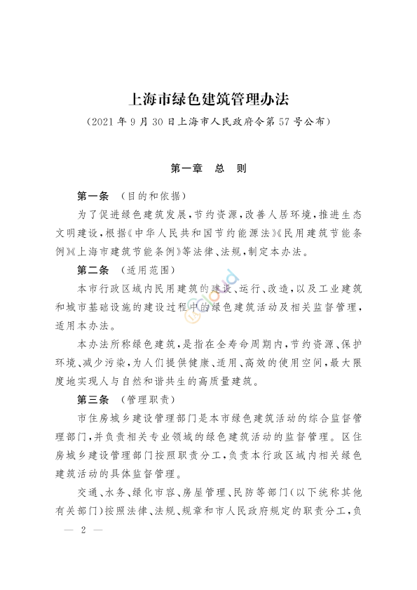 • 上海市绿色建筑管理办法 市人民政府令第57号 (匹配度 0.946)