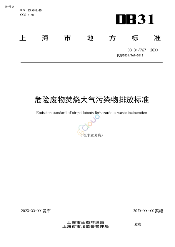 本文件规定了危险废物(含医疗废物)焚烧大气污染物排放控制要求、监测、达标判定和监督管理要求。 本文件适用于上海市辖区内现有危险废物(含医疗废物、)焚烧大气污染物排放管理,以及新建、改建、扩建危险废物焚烧项目的环境影响评价、环境保护设施设计与施工、竣工环境保护验收、排污许可管理及建成后的大气污染物排放管理。 已发布专项的国家污染控制标准或者环境保护标准的专用危险废物焚烧设施执行其专项标准。 危险废物熔融、热解、气化等高温热处理设施的污染物排放限值,若无专项国家或地方污染控制标准或者环境保护标准的,可参照本文件执行。 本标准不适用于利用锅炉和工业炉窑协同处置危险废物。