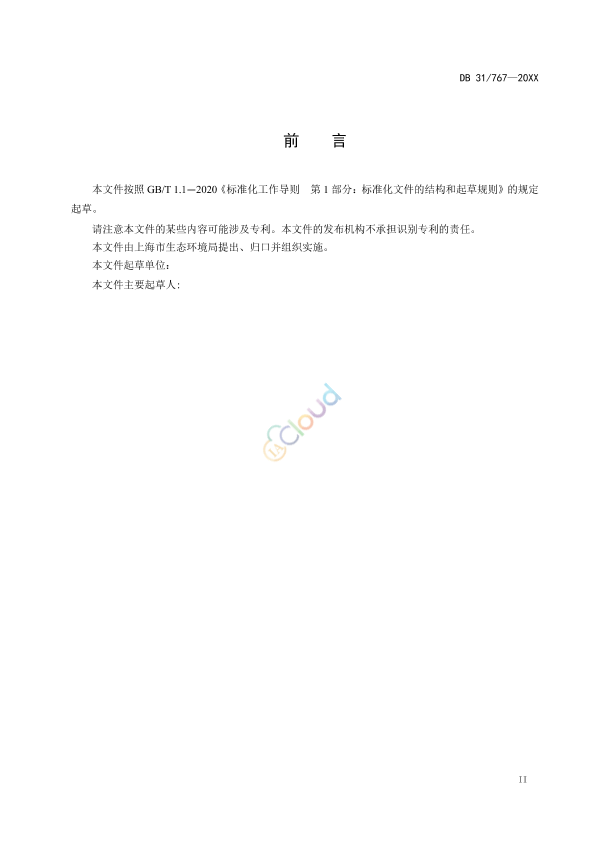 本文件按照 GB/T 1.1—2020《标准化工作导则 第 1 部分:标准化文件的结构和起草规则》的规定起草。 请注意本文件的某些内容可能涉及专利。本文件的发布机构不承担识别专利的责任。 本文件由上海市生态环境局提出、归口并组织实施。 本文件起草单位: 本文件主要起草人: