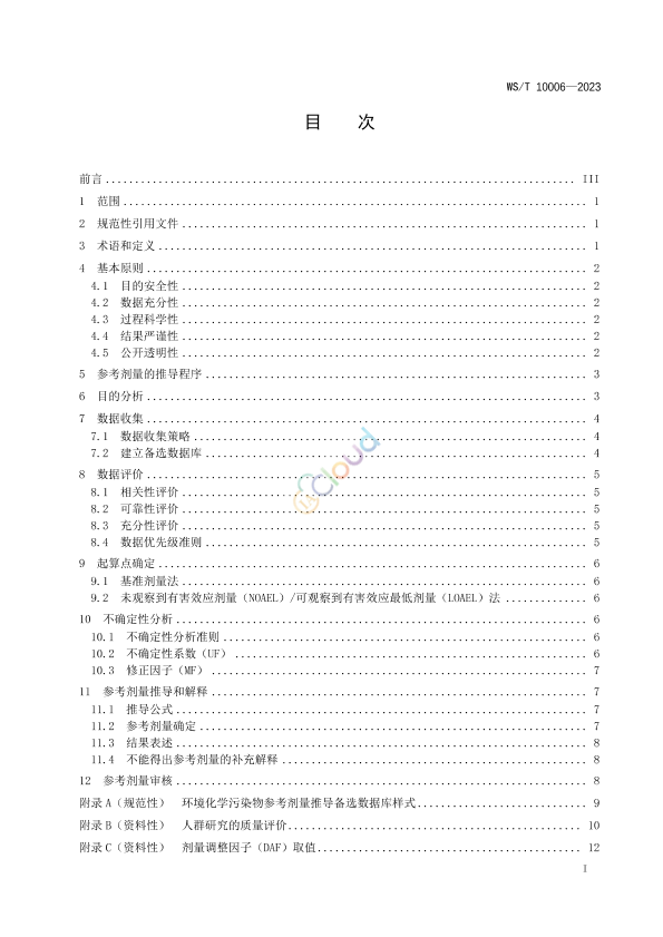 本文件提供了以保护人体健康为目标的环境化学污染物参考剂量推导的程序、方法步骤和技术内容的指导。 本文件适用于能够引起有阈值毒性作用的单一环境化学污染物经不同暴露途径导致人体急性或慢性有害效应的参考剂量推导。