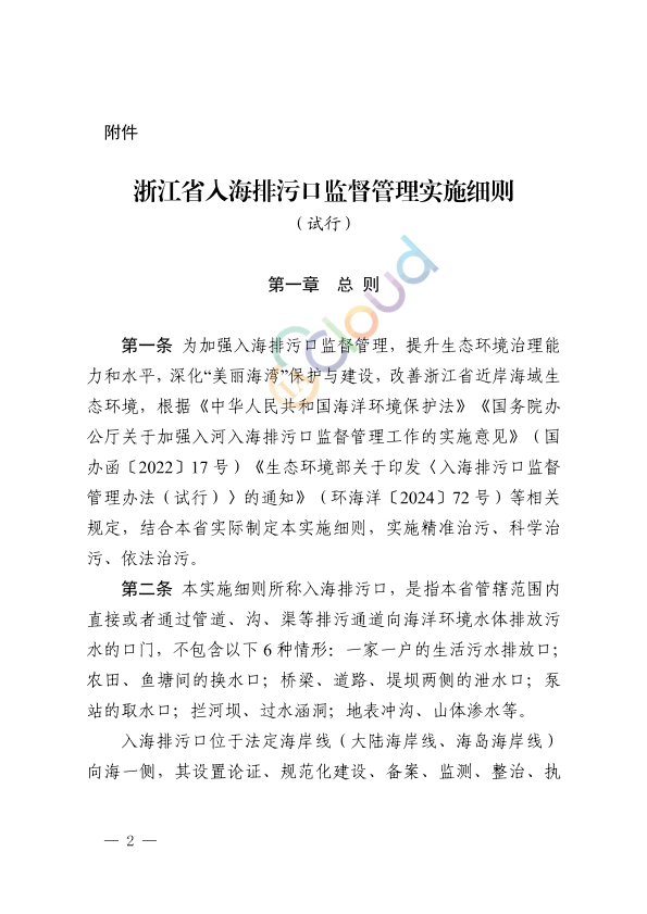 沿海设区市生态环境局: 为进一步加强入海排污口监督管理,根据《生态环境部关于印发入海排污口监督管理办法(试行)的通知》(环海洋〔2024〕72号)要求,我厅制定了《浙江省入海排污口监督管理实施细则(试行)》,现印发给你们,请认真贯彻执行。 浙江省生态环境厅 2025年12月26日