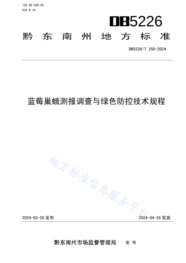 本文件规定了蓝莓巢蛾测报调查与绿色防控的术语和定义、测报调查、发生期预测、农事活动记载、防控技术。 本文件适用于蓝莓巢蛾测报调查与绿色防控。