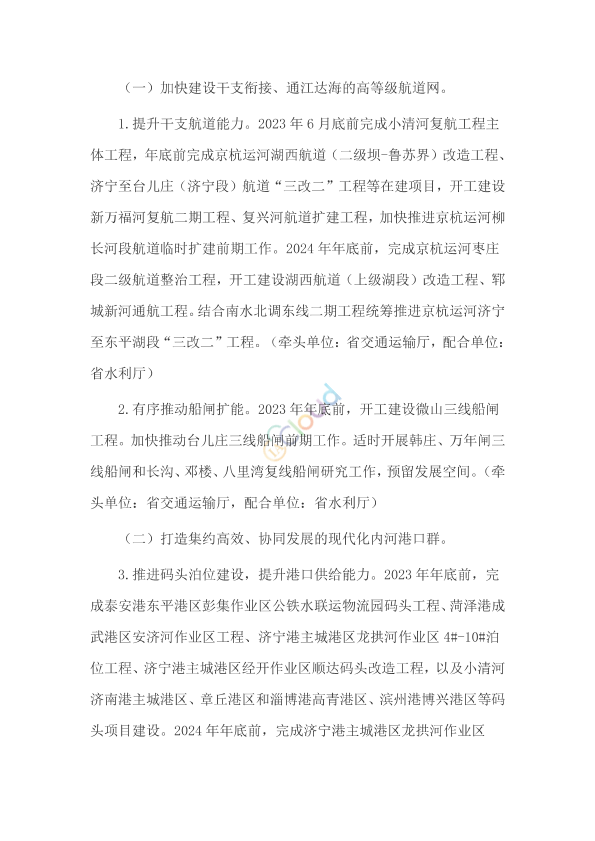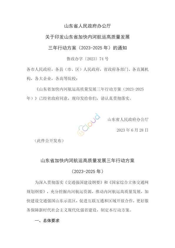 各市人民政府,各县(市、区)人民政府,省政府各部门、各直属机构,各大企业,各高等院校: 《山东省加快内河航运高质量发展三年行动方案(2023-2025年)》已经省政府同意,现印发给你们,请认真贯彻落实。 山东省人民政府办公厅 2023年6月28日