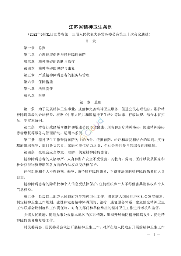 江苏省精神卫生条例概览(2022年9月1日起施行)