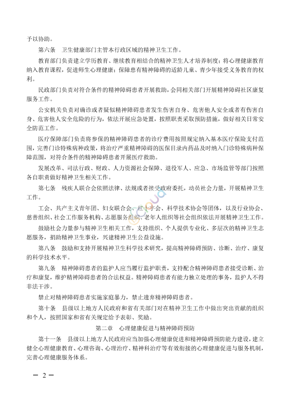 发展精神卫生事业,保障公民心理健康,维护精神障碍患者合法权益,构建预防•治疗•康复全链条服务体系。